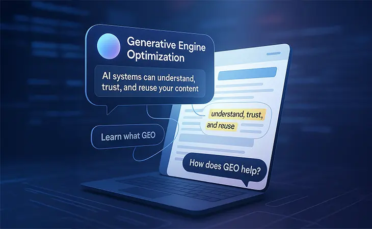 GEO is the process of optimizing your content so AI systems can understand, trust, and reuse it when forming answers.
